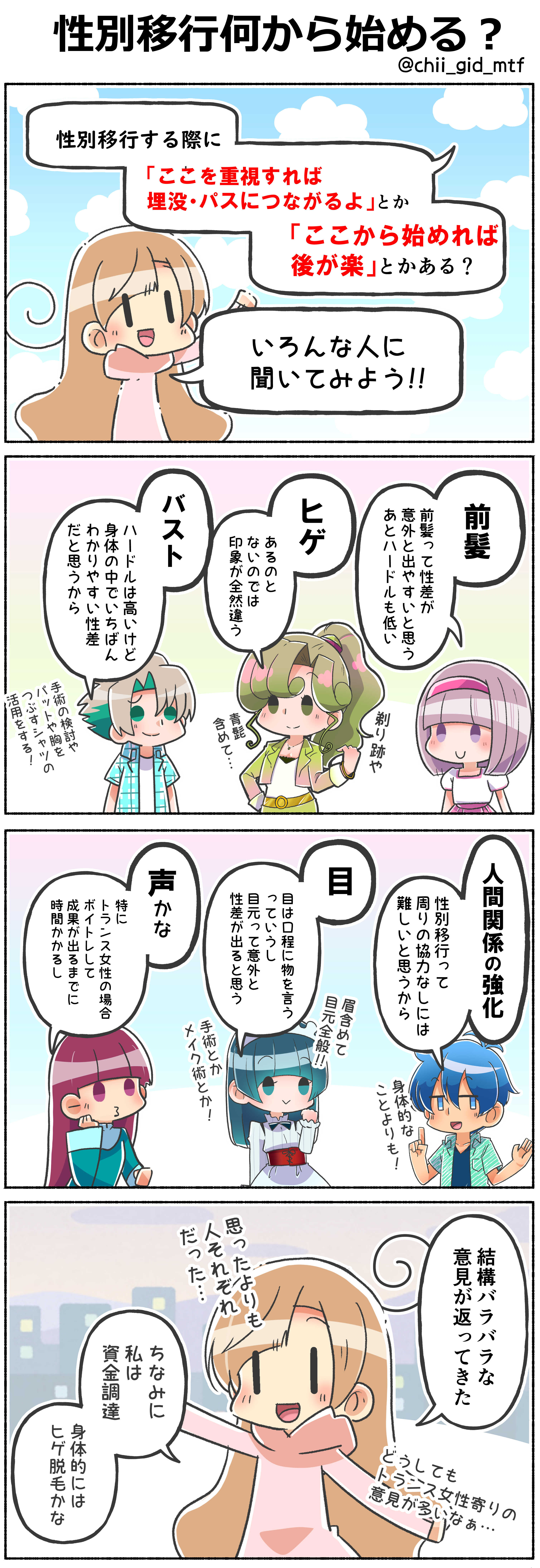 以前「性別移行するときは、ここから始めると後が楽だよ的なものや、パス度アップに繋がるものはありますか?」的な質問を投げかけたらさまざまは反応が返ってきました。
