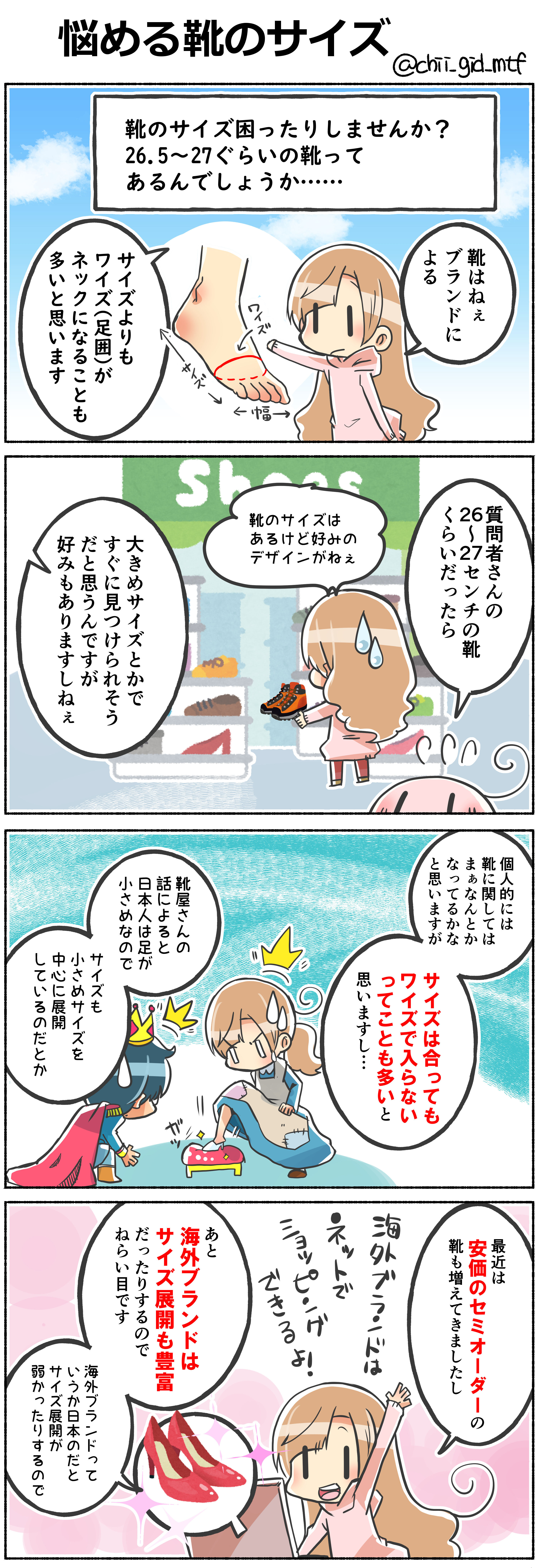 問題は足囲(ワイズ)のほうがなかなかなかったりする。最近は安価でセミオーダーの靴も増えましたし、既製品ならサイズ展開が豊富な海外ショップを参考にしてみるといいと思います!