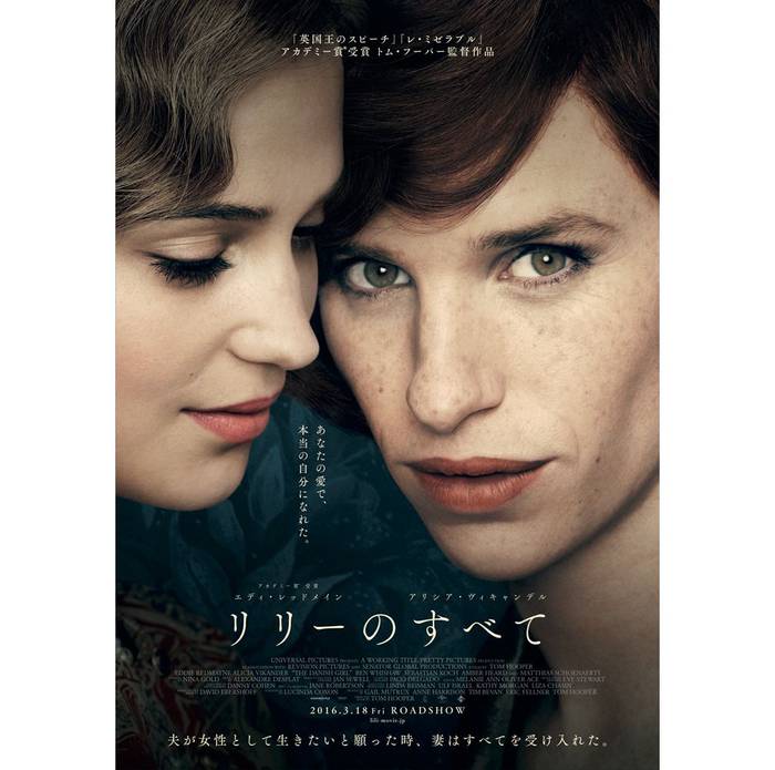 世界ではじめて性別適合手術をしたリリー・エルベという人物とその妻ゲルダ・ヴェイナーを題材にした作品『リリーのすべて(原題:The Danish Girl)』です。