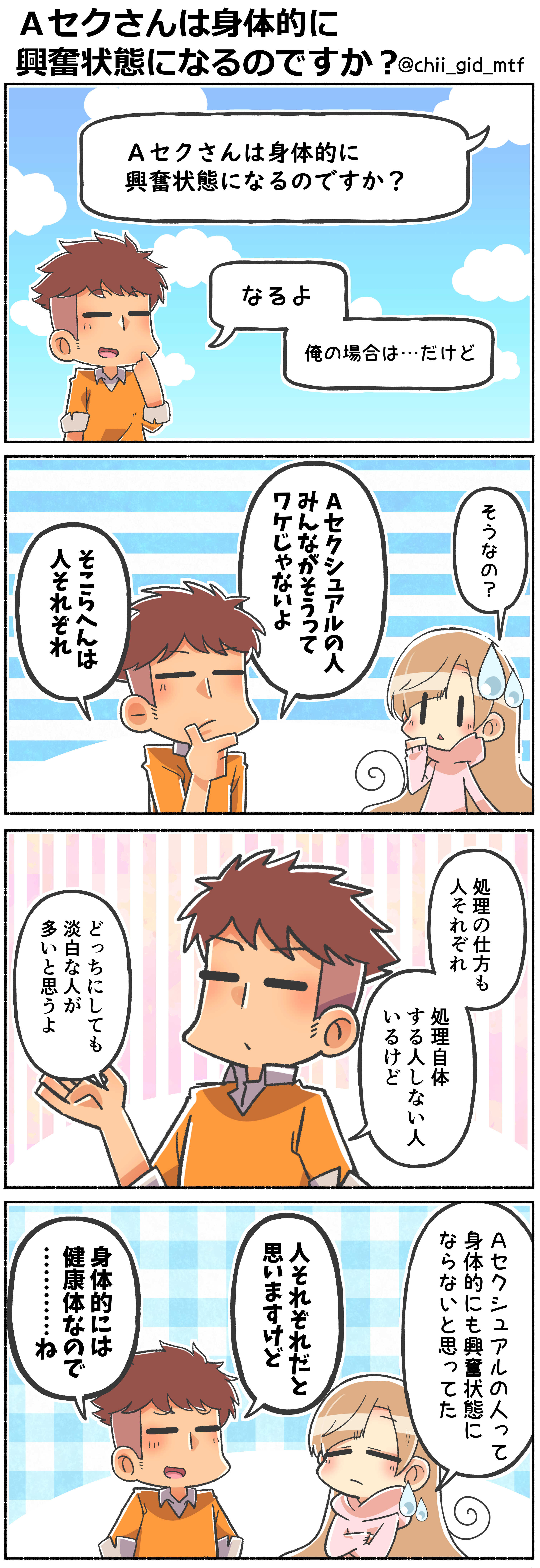 ちなみにAセクくんは身体的興奮状態になっても、いつの間にか治まってるそうです。