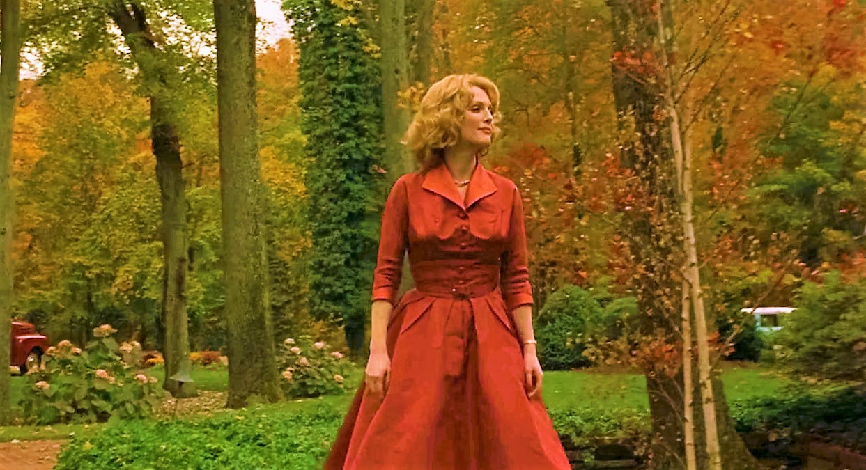 また映像の鮮やかな色彩が印象的で、紅葉の美しさや50年代のカラフルなファッションがとても素敵で、1950年代のファッションやインテリア、車や街並みの品の良いレトロな色遣いがとても落ち着いていて目を奪われます。